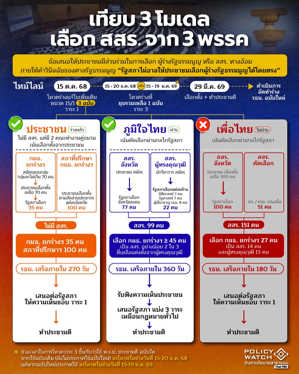 - 15 – 20 ธ.ค. 68 รัฐสภาลงมติร่างแก้ไขรัฐธรรมนูญในวาระที่ 3