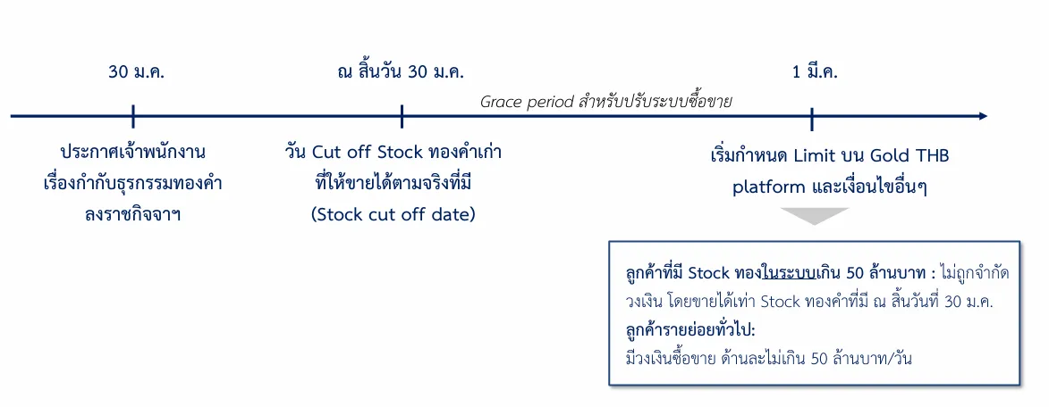 ทั้งนี้ ผู้ที่ถือทองคำมูลค่ามากกว่า 50 ล้านบาท ณ สิ้นวันที่ 30 มกราคม 2569 จะสามารถขายทองคำตามจำนวนที่มีอยู่เดิมได้ โดยไม่จำกัดระยะเวลาในการขาย